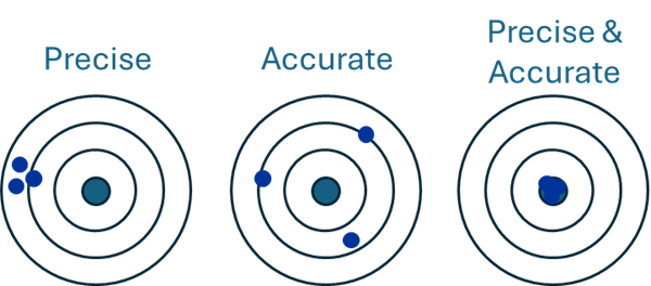 At least seven separate papers have been published that discuss the benefits of accurate and precise SRT/MCRT Control (references below). What does accurate and precise mean? Precise means the data and results are consistent – much like how a shooter can produce a tight group on the target, with minimal deviation. Accurate means the average of the results agrees with the goal – much like how a shooter produces a group around the bullseye. When you have accuracy combined with precision, you can produce a tight group, dead-center on the bullseye.